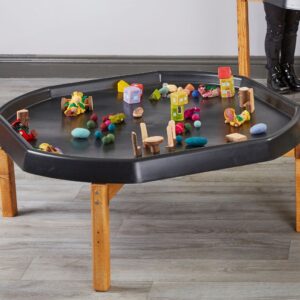 Dieses beliebte schwarze Tuffsteintablett mit einem Durchmesser von 70 Zentimetern ist das Spieltablett für kreative Kinder. Ideal für Sinnesspiele, Sand- und Wasserspiele, thematische Spiele und viele andere Aktivitäten. Dank der erhöhten Ränder bleiben die Spielsachen, der Sand oder das Wasser ordentlich in der Schale. Perfekt für drinnen und draußen. Diese Tuffschale ist leicht zu reinigen und eignet sich sowohl für zu Hause als auch für Kindertagesstätten und Schulen.