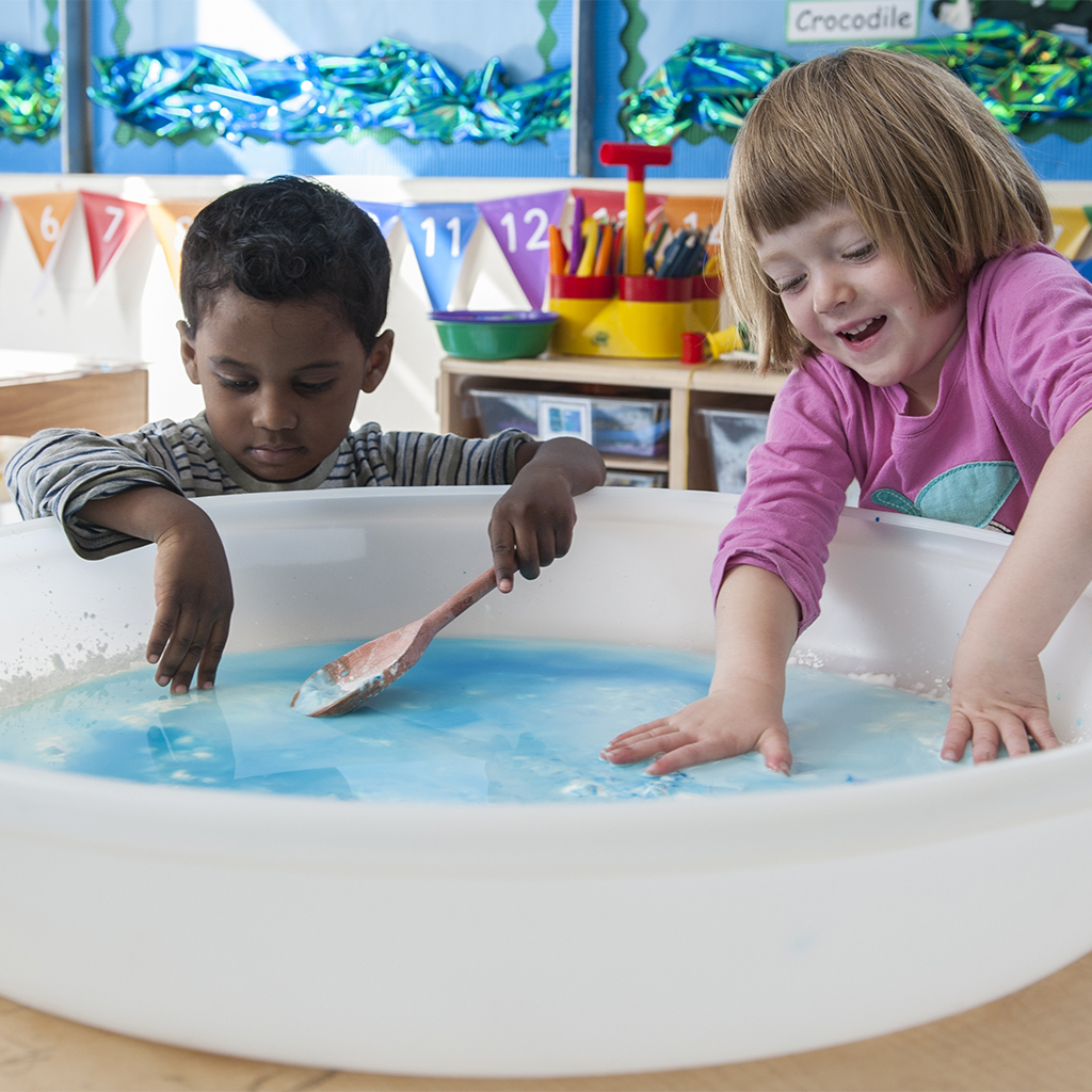 Dieses beliebte tiefe Tablett in Weiß ist das Spieltablett | Entdeckertisch für kreative Kinder. Es ist ein kleiner Bruder des Tuff Tray. Ein bisschen kleiner, aber extra tief! Ideal für Sinnesspiele, Sand- und Wasserspiele, thematische Spiele und viele andere Aktivitäten. Dank der erhöhten Ränder bleiben die Spielsachen, der Sand oder das Wasser ordentlich im Inneren des Tabletts. Perfekt für drinnen und draußen. Die runde Wanne ist superleicht zu reinigen und eignet sich sowohl für zu Hause als auch für Kindertagesstätten und Schulen.