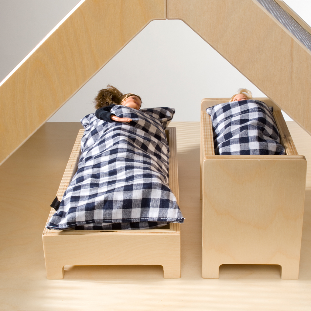 Das geschlechtsneutrale Puppenhaus hat ein schönes Design und es steckt eine klare Philosophie dahinter. Denn das Spielen mit der DollsVilla ist ein Spiel mit Holz.