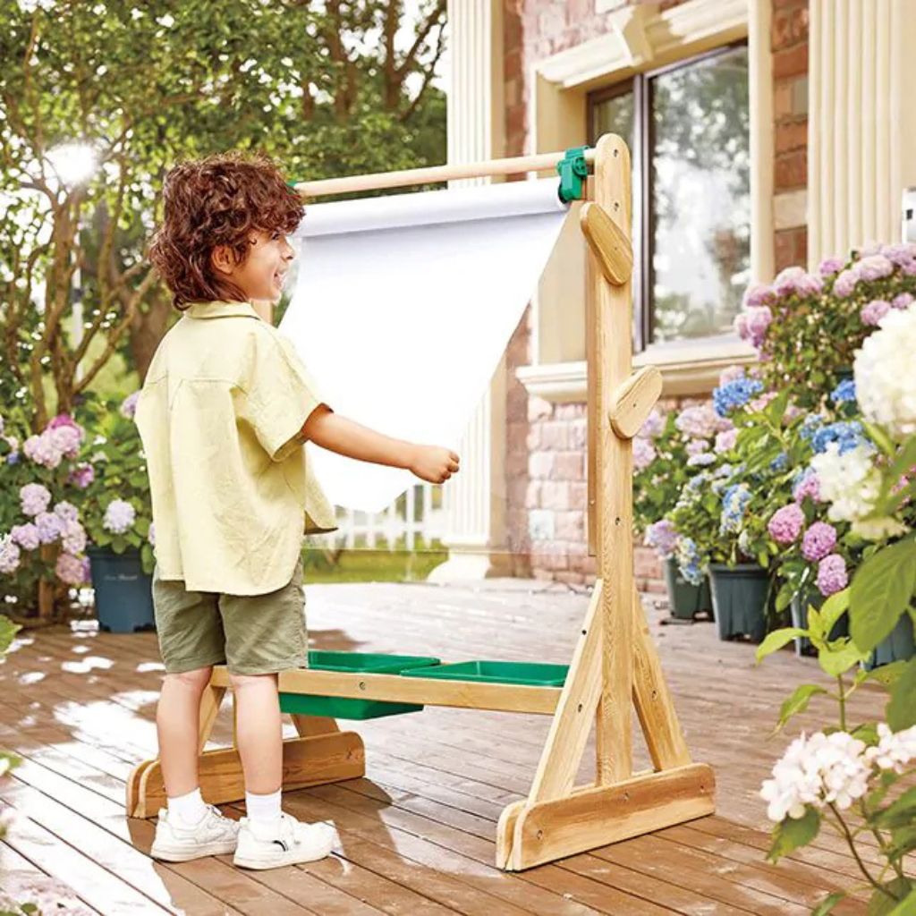 Stimulieren Sie die Fantasie junger Künstler mit diesem lustigen Spielzeug für draußen. Die vielseitige Staffelei ist nach jedem Gebrauch leicht zu reinigen. Ein Spaß für zu Hause, aber auch durchaus geeignet für die Kinderbetreuung, zum Beispiel.