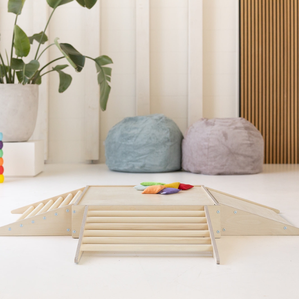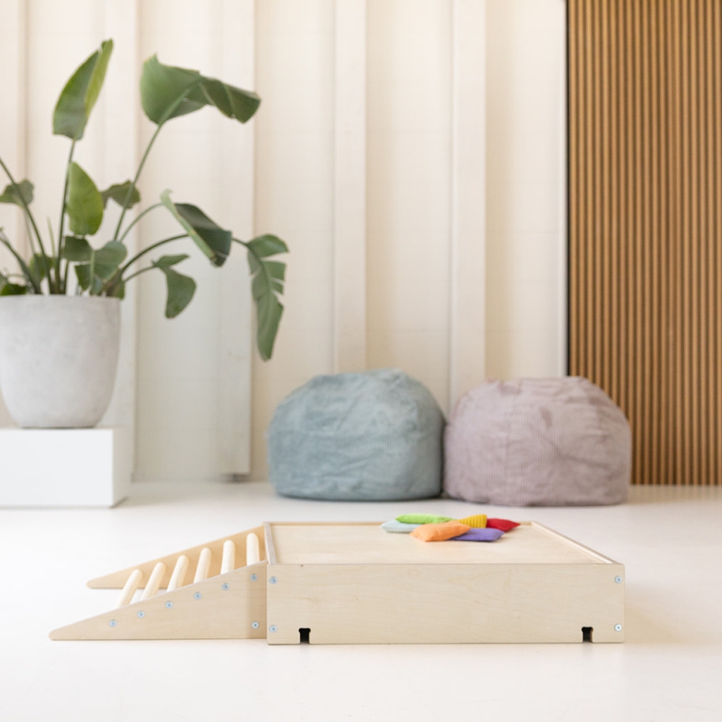 Dieser von Emmi Pikler inspirierte Krabbelberg | Treppe von Jindl ist eine Erweiterung der Krabbelkiste. Kinder können selbst darauf klettern. Auf diese Weise fördern Sie die Orientierung, den Gleichgewichtssinn und das Selbstvertrauen von Kleinkindern. Die Krabbelhügel-Treppe ist einfach zu bedienen und bietet unzählige Möglichkeiten. Der Krabbelhügel kann mit der