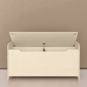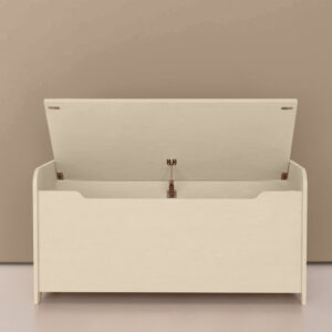 Die Spielzeugtruhe hat ein besonders stabiles und kinderfreundliches Scharnier. Dank der Federn in den Scharnieren fällt der Deckel nicht unerwartet zu. So können Kinder die Klappe sicher selbst öffnen und schließen. An der Innenseite befinden sich 2 Magnete, damit die Klappe gut sitzt. An der Vorderseite der Box sind keine Schrauben sichtbar, was sie optisch noch ansprechender macht. Die Spielzeugtruhe | Aufbewahrungstruhe lässt sich perfekt mit den Jindl Spielzeugschränken kombinieren.
