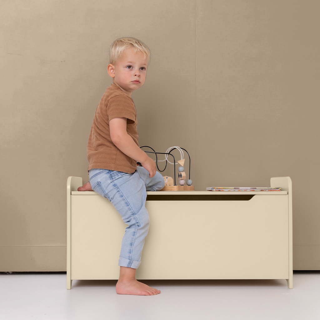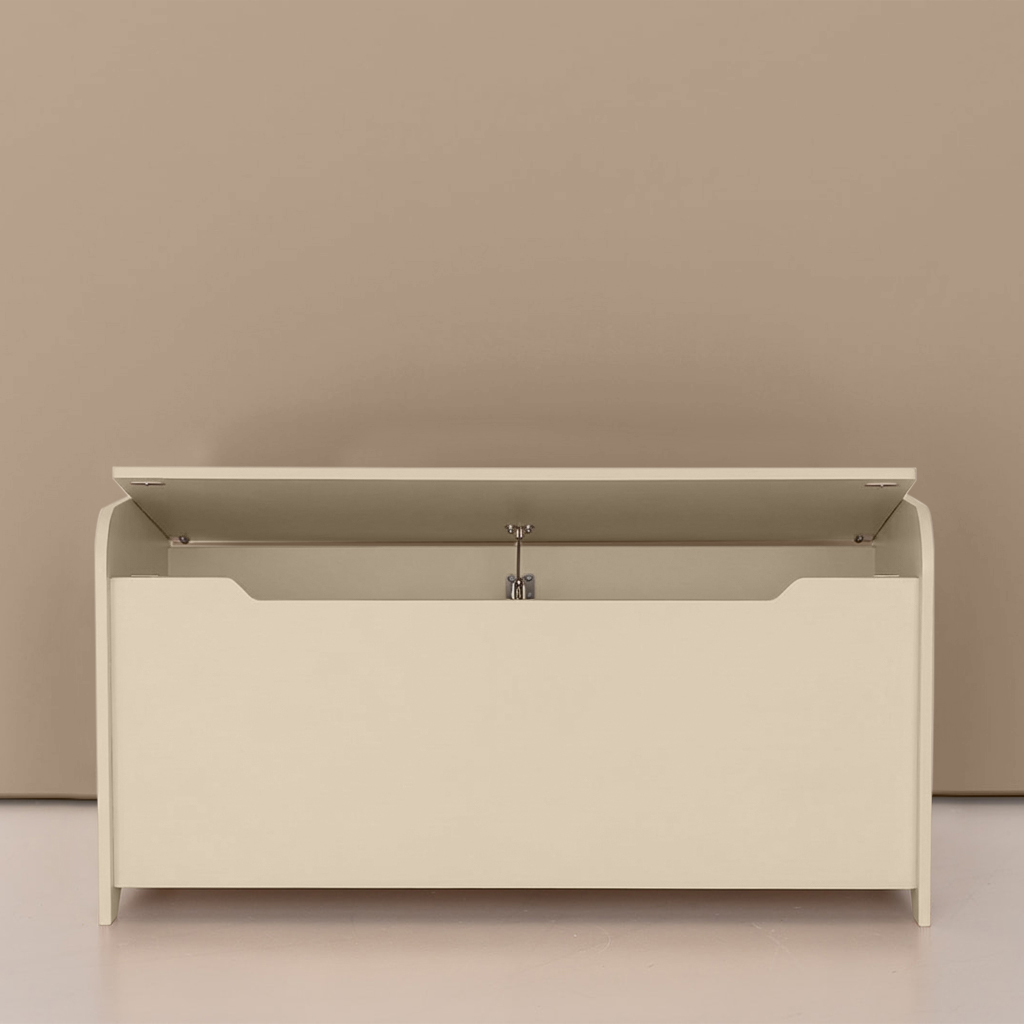 Beeindruckend! Diese niedliche Spielzeugtruhe oder Aufbewahrungstruhe in zartem Beige ist hübsch und super praktisch. Sie können ganz einfach Spielzeug oder andere Gegenstände, wie z.B. Schuhe, aufbewahren. Ordentlich ist ordentlich.