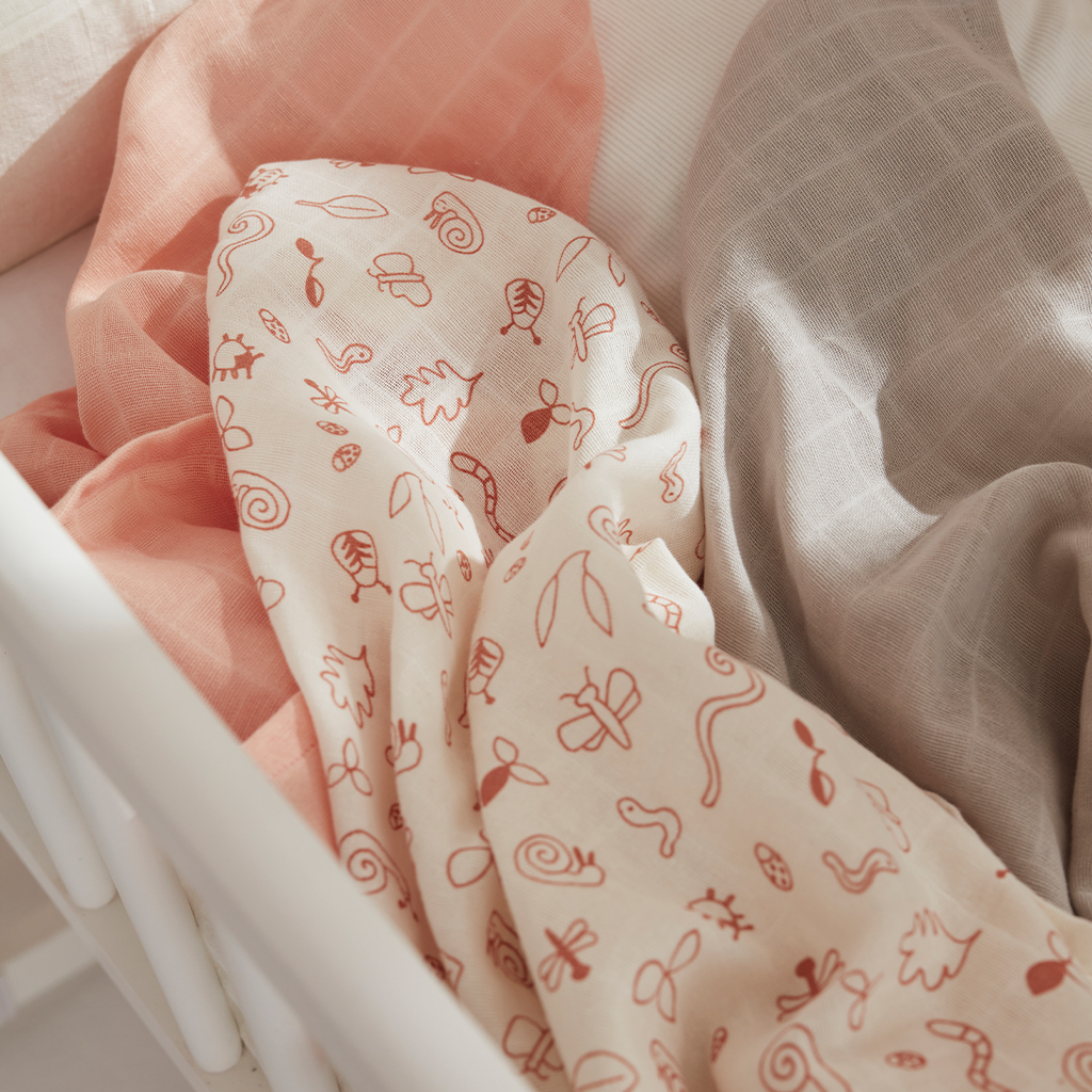 Set aus drei großen, weichen, hydrophilen Tüchern aus 100% Baumwolle in 3 ruhigen Farben. Das Set besteht aus zwei neutralen Tüchern und einem gemusterten Tuch. Verwenden Sie die herrlich weichen Decken als Krabbeldecke, für den Kinderwagen oder zum Einwickeln Ihres Babys. Die hydrophilen Musselin-Decken sind schön gefaltet und im 3er-Pack mit einer Schleife als hübsche Geschenkverpackung verpackt. Perfekt zum Beispiel als Geschenk für die Mutterschaft.