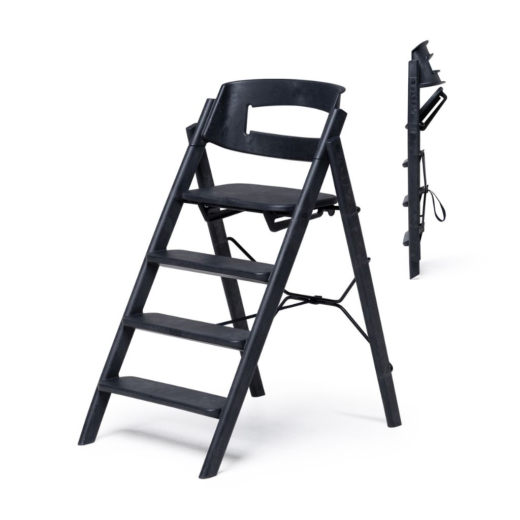 Beeindruckend! Lernen Sie den zusammenklappbaren Hochstuhl KAOS Klapp kennen, der zu 100% aus recyceltem Kunststoff besteht. Dieser Hochstuhl in elegantem Schwarz ist für Kinder ab 0+ Monaten bis ca. 8 Jahre geeignet. So werden Sie jahrelang Freude an diesem Growstuhl haben! Mit seiner bequemen, ergonomischen und aktiven Haltung ist der Stuhl sehr angenehm zu sitzen. Die Beine können sich bequem auf den Stufen ausruhen, die auch durchaus zum Aufsteigen einladen. Der Stuhl ist zu 100% aus recycelten „Verbraucherabfällen“ hergestellt und hat eine um 63% geringere Klimabelastung im Vergleich zu Hochstühlen aus neuem Kunststoff. Auf diese Weise leisten wir alle unseren Beitrag zu einer besseren Umwelt.