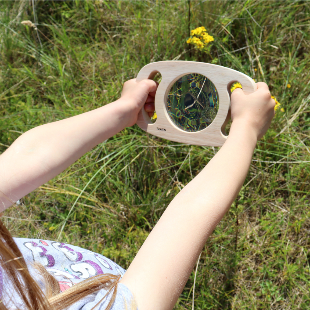 Das Easy Hold Entdecker-Set besteht aus 6 stabilen Rahmen, die es Kindern ermöglichen, die Welt auf eine neue Art zu sehen. Die Rahmen aus massivem Gummibaumholz enthalten verschiedene Linsen und Spiegel, die Farbe, Form und Reflexion verändern und so die Neugierde und das Staunen fördern.