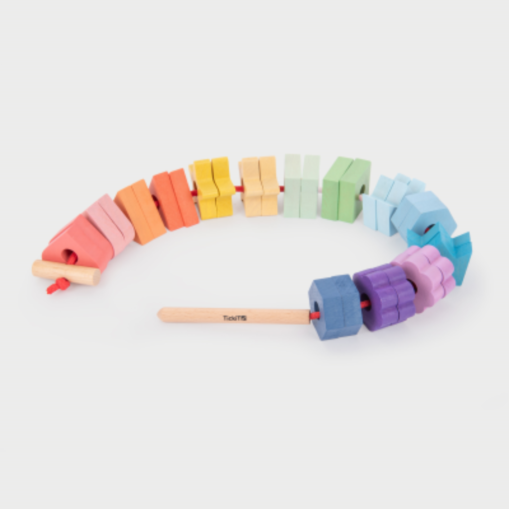 Diese Regenbogen-Fädelfiguren sind aus massivem Buchenholz gefertigt und in zwei Schattierungen von sieben verschiedenen Regenbogenfarben erhältlich. Das Set bietet viele Möglichkeiten zur Entwicklung der Feinmotorik, der Hand-Augen-Koordination, des logischen Denkens und des Erkennens von Formen und Farben.