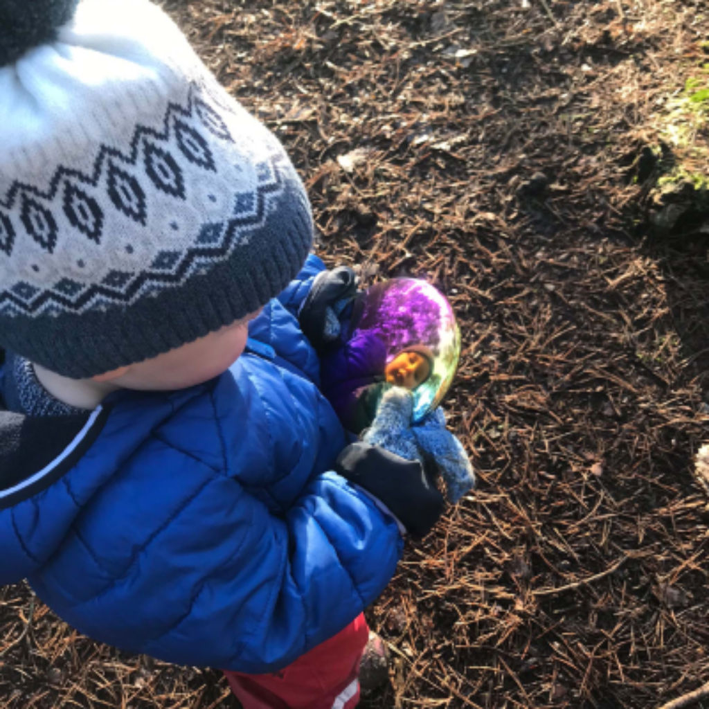 Die Scheiben sind leicht, glatt und liegen angenehm in der Hand. Die handgefertigte verspiegelte Oberfläche zeigt leicht gebogene und verzerrte Reflexionen in verschiedenen Farben. Das regt die Neugierde der Kinder an und lädt sie zum Schauen, Entdecken und Staunen ein. Ideal zur Förderung der kreativen Sprache, des fantasievollen Spiels und zum Bau spielerischer, wackeliger Stapeltürme.